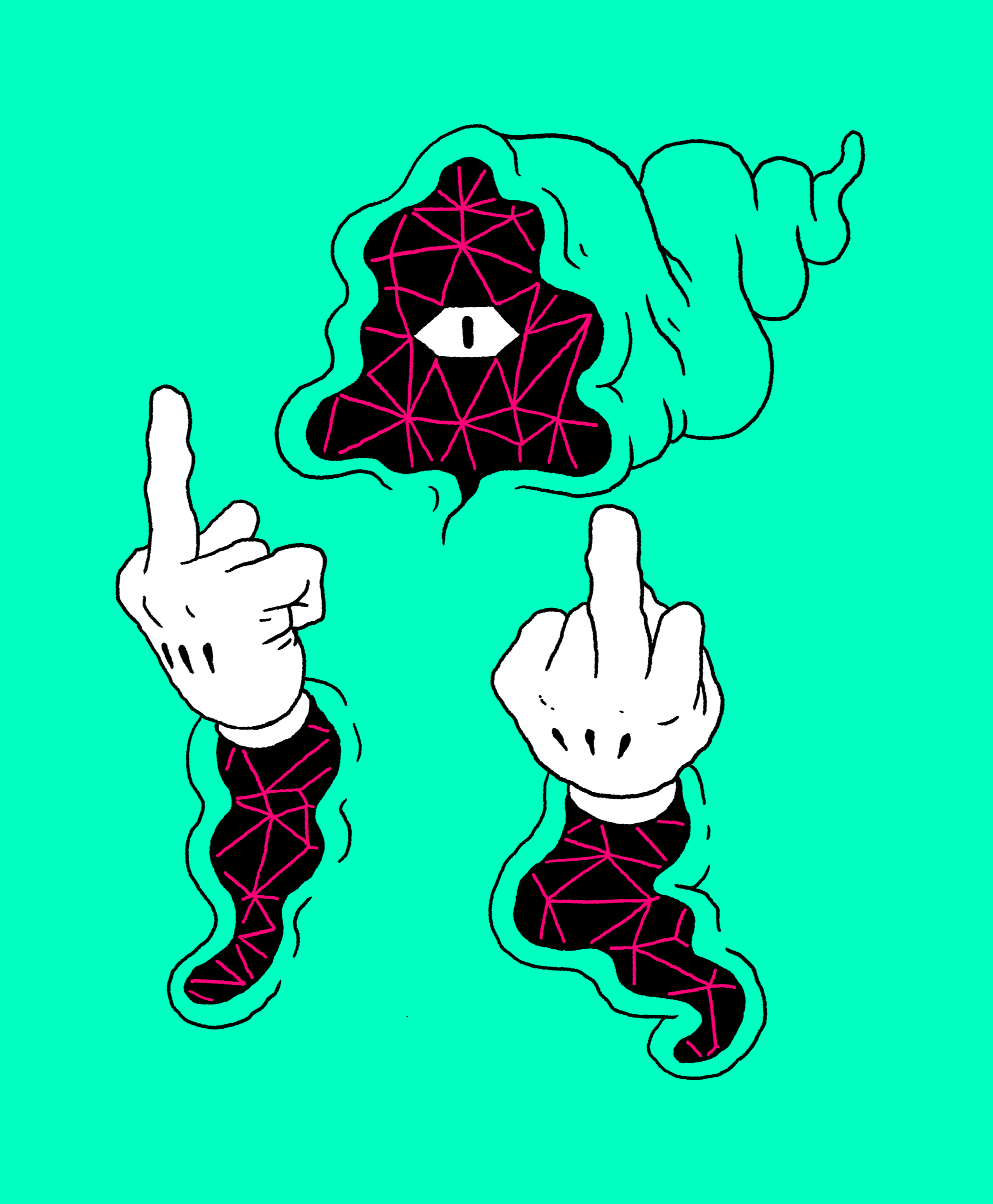 For this illustration, I aimed to create something simple and memorable, with an almost symbolic nature. It combines a distillation of a lot of recurring themes in my work: wizards, cartoon troped and futuristic elements. I think showing restraint benefitted this piece, keeping it bold and stripped back. This was turned into a print series with 3 colour variants.